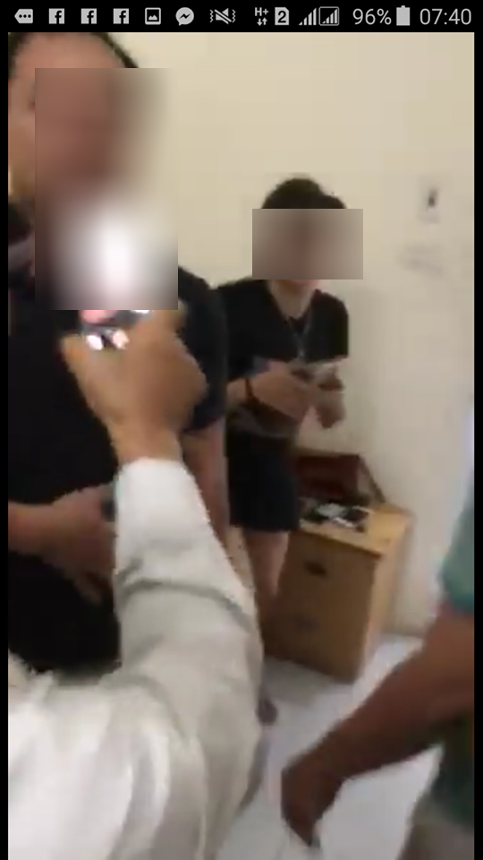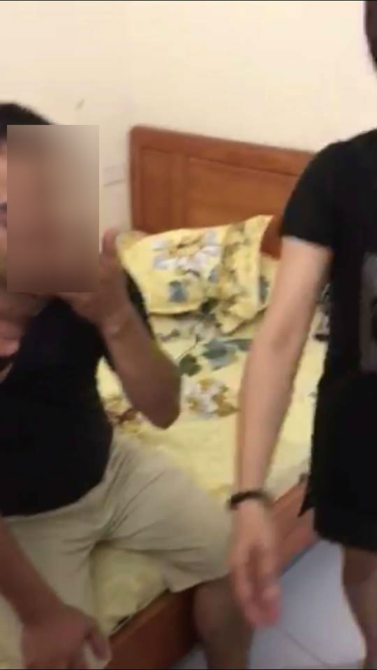 Đôi nam nữ bị anh chồng theo dõi, bắt quả tang tại trận trong nhà nghỉ. Ảnh cắt từ clip.