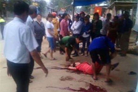 Chứng kiến hành động man rợn của Quân, nhiều người dân định lao vào can ngăn thì bị đối tượng dọa chém chết. Không biết làm cách nào, nhiều người đã dùng gậy gộc, gạch đá ném nhằm ngăn cản hành vi của đối tượng.