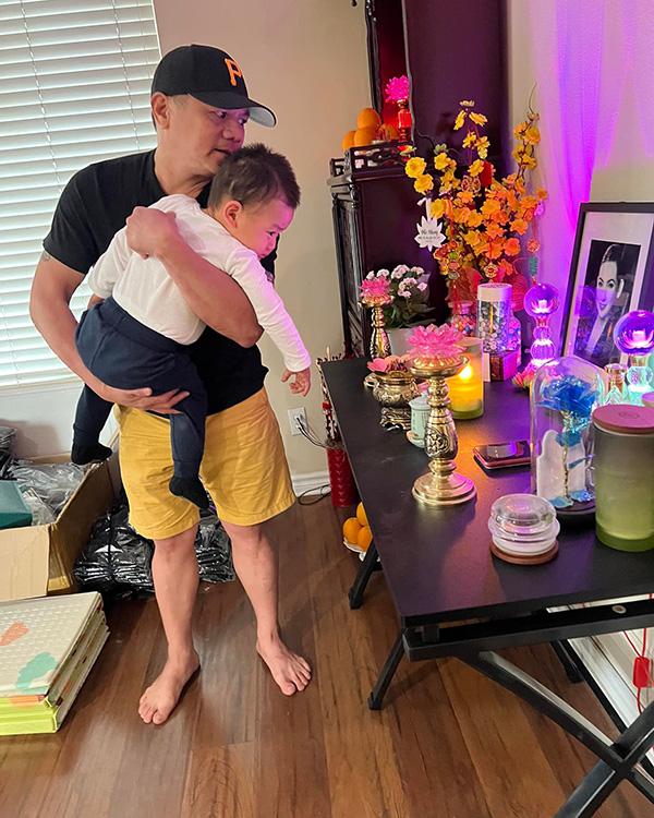 Vào sinh nhật cố nghệ sĩ Phi Nhung, chồng cũ của cô - ông DP Phạm - đăng loạt ảnh cùng cháu trai Nicholai trên mạng xã hội. Ông cũng chia sẻ lại khoảnh khắc cháu ngoại hôn lên di ảnh Phi Nhung và hình Wendy Phạm - con của ông và vợ cũ - chụp cùng mẹ trong quá khứ.