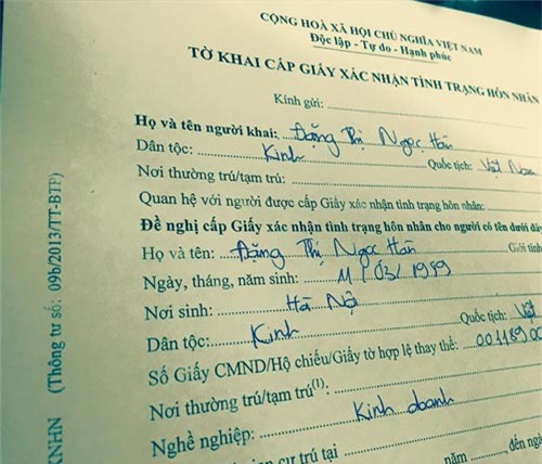 Hoa hậu Ngọc Hân chia sẻ giấy xác nhận tình trạng hôn nhân