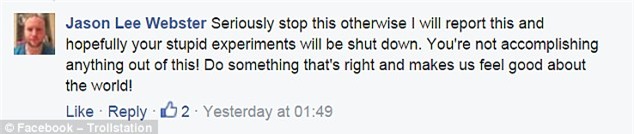 Lee Webster cho rằng:"Hãy nghiêm túc dừng việc này làm, tôi không đồng tình với việc này và hãy dừng lại trò thử nghiệm xã hội này”.