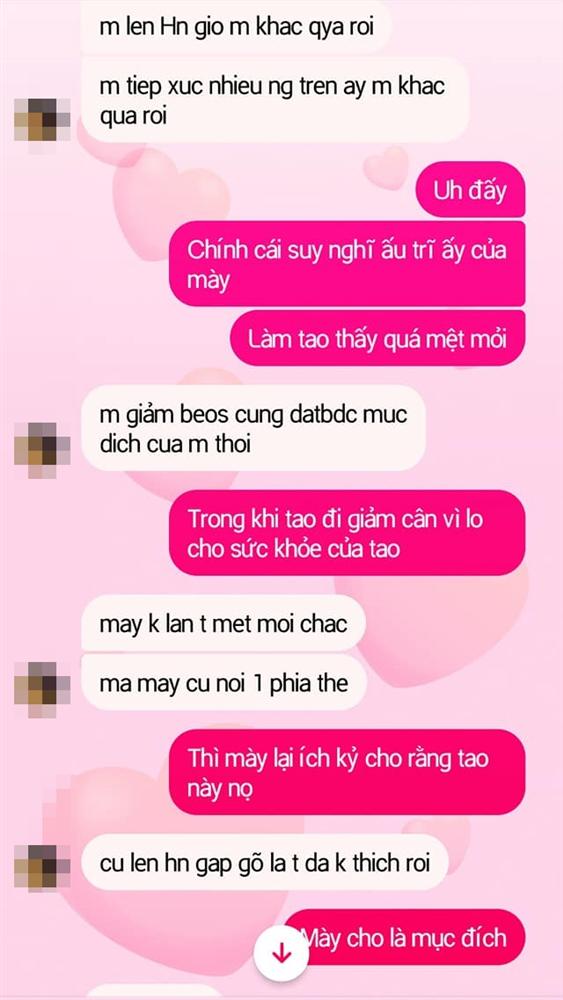 Họ giúp tao giảm cân để có được cái sức khỏe về sau này thì mày lại cho rằng tao đi giảm cân để quan hệ trai gái. Đúng thật đã phản bội tao rồi lại còn mắc bệnh ảo tưởng, ích kỷ.