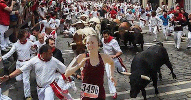 Stephanie trong lễ hội bò tót ở Tây Ban Nha.