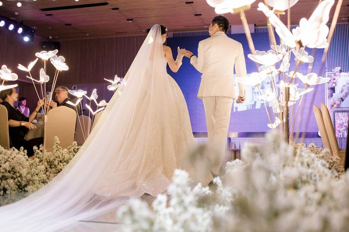 Khoảnh khắc cô dâu Ngân Anh xinh đẹp, rạng rỡ được cha dắt tay vào lễ đường.