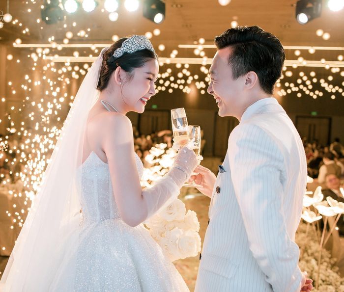 Trong hôn lễ, cả hai nhau trao ánh mắt tình tứ và nhiều cử chỉ ngọt ngào, thân mật.