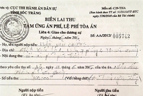 Cơ quan thi hành án đã tạm ứng án phí phúc thẩm của ông Chương. Ảnh: Việt Tường. |