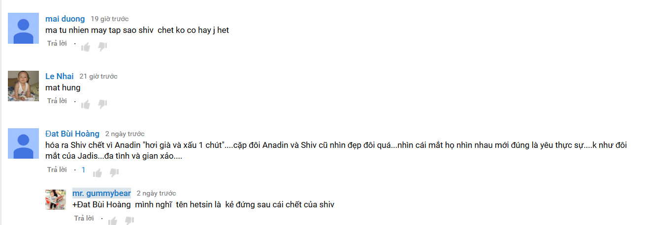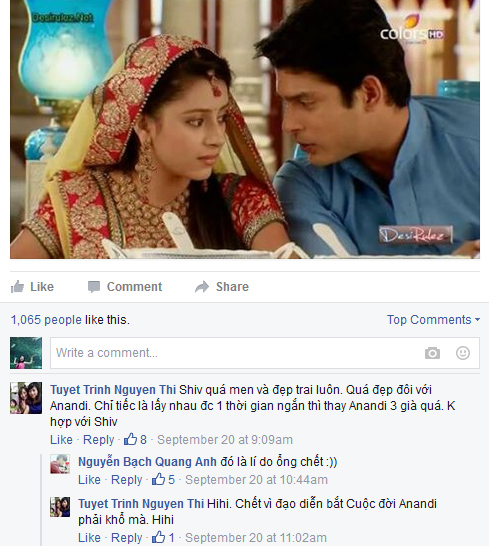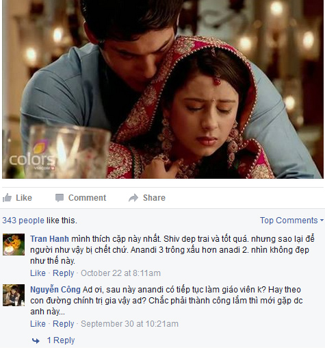 “Anandi và Shiv cưới nhau là được rồi, kết thúc luôn có hay không. Cứ vẽ voi vẽ chuột, lâm li bi đát làm gì nữa cơ chứ, xem vừa mất thời gian vừa rước bực vào người. Xem hết đoạn cưới nhau, mình sẽ không xem phim này nữa. Thề đấy!”, một bạn đọc bình luận.