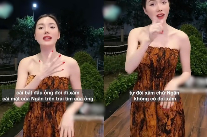 "Ngân yêu ổng, ổng đòi đi xăm mặt ngân lên ngực trái. Tự đòi xăm chứ Ngân không đòi, mà lúc đấy mới yêu nhau thôi. Lúc đầu Ngân không cho nhưng ổng vẫn quyết đi xăm bằng được", Ngân Collagen cho biết.