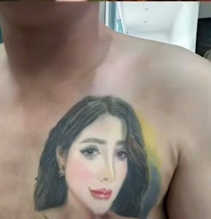 Trong khi ông xã "boss miền Tây" mới yêu đã xăm hình vợ lên ngực trái để chứng minh tình yêu thì bà xã anh cũng không kém cạnh, xăm tên chồng cho trọn vẹn.