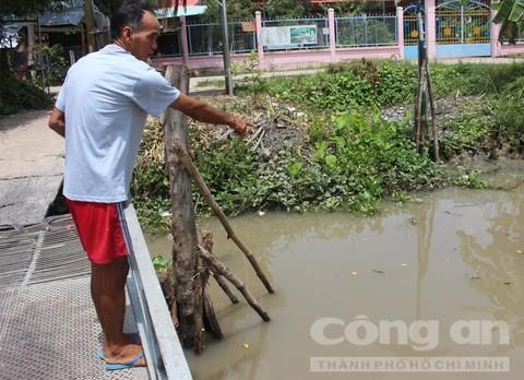 Ông Duyên chỉ nơi phát hiện thi thể nạn nhân