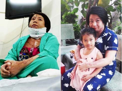 Sau gần 1 năm kể từ khi bị chồng nhốt rồi tẩm xăng đốt, chị Hoàng Thị Trang (26 tuổi, ở Yên Bái) đã phải trải qua 5 lần ghép da.
