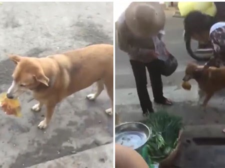 Hình ảnh chú chó đáng yêu miệng ngậm chặt túi thức ăn giúp người chủ của mình đi chợ đã thu hút được rất nhiều sự quan tâm của cư dân mạng.