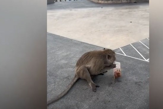 Chú khỉ ở Thái Lan cướp bữa ăn của người