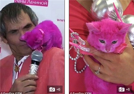 Theo truyền thông địa phương, vào tháng 9 năm ngoái, để tham dự 1 sự kiện yêu cầu khách mời mặc màu hồng, nhà văn, người mẫu kiêm diễn viên người Nga Elena Lenina (35 tuổi) đã nhuộm hồng luôn cho chú mèo cưng.