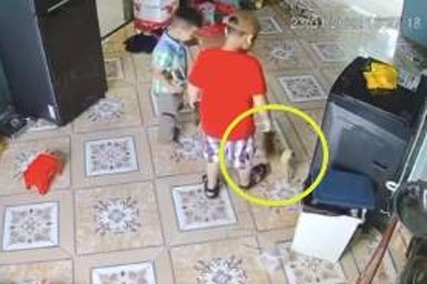 Trích xuất camera cho thấy 2 bé trai giẫm đạp lên chú mèo