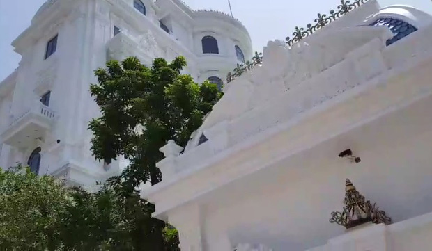 Tòa lâu đài hoành tráng có dãy cổng dài hàng trăm mét, cao lừng lững được gắn hệ thống camera an ninh thông minh. Phía trong khuôn viên là hồ nước rộng, hệ thống cây cảnh lâu năm giá trị cao.