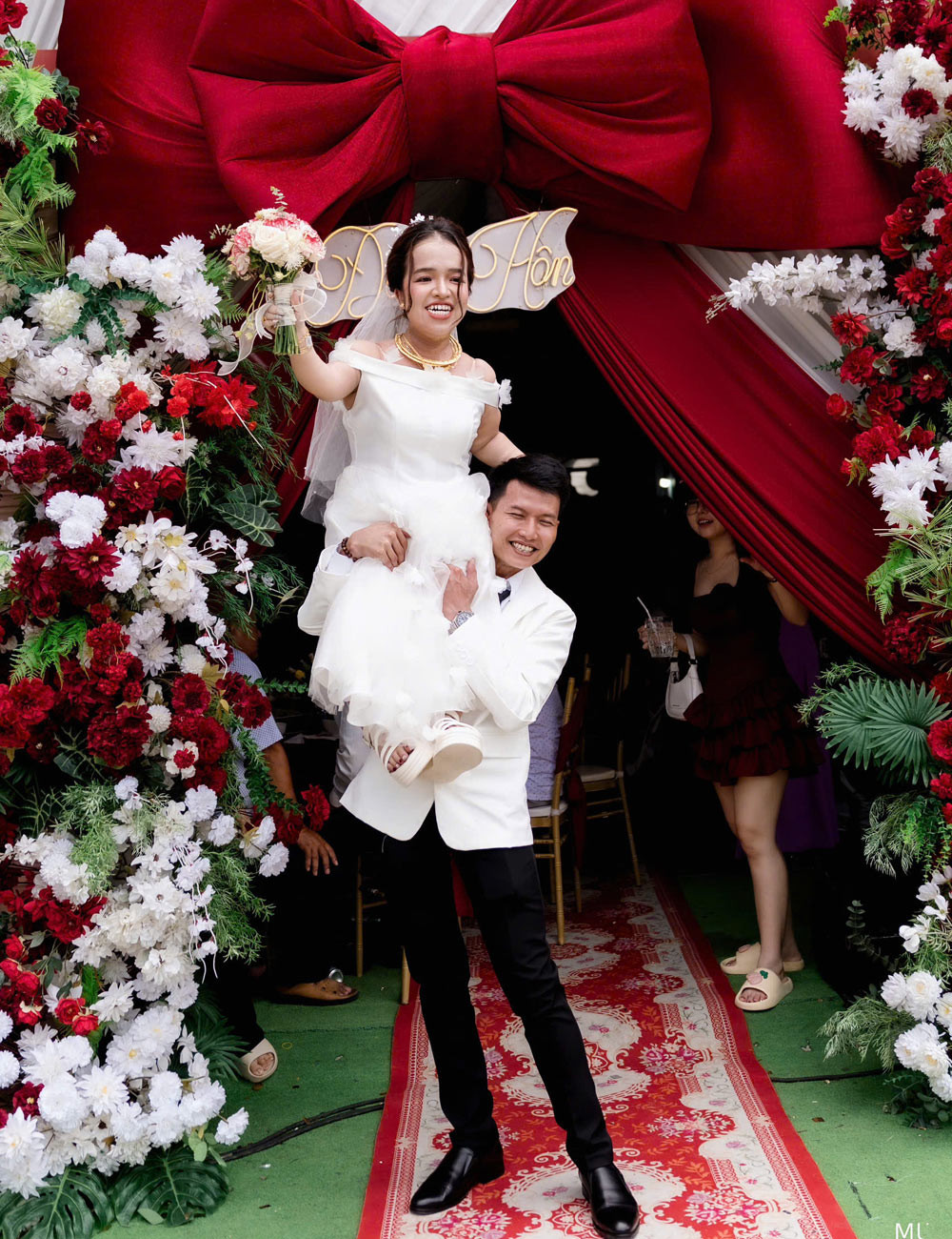 “Lúc đeo vàng cho tôi, anh Huệ run lắm. Tay anh run bần bật có lẽ vì hồi hộp, vui mừng và xúc động. Mẹ tôi thấy vậy thì nói đùa ‘sao run dữ vậy con? Lần đầu làm chuyện ấy hả?’ khiến mọi người phì cười”, Mi chia sẻ.