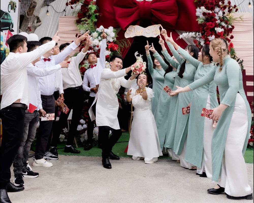 Trong đám hỏi, hành trình gặp gỡ và đến với nhau của cặp đôi được mọi người hiểu rõ hơn. Ai cũng mừng cho “cô gái tí hon” cuối cùng đã tìm được bến đỗ hạnh phúc của đời mình.