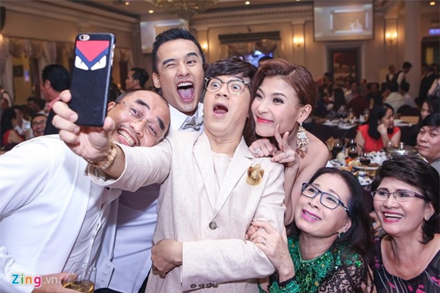 NSƯT Thành Lộc và Kim Xuân trẻ trung không kém khi selfie cùng đàn em. |