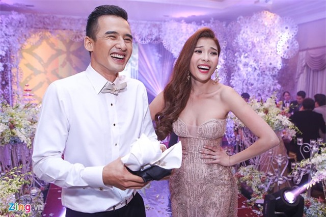 Đó là một trong những khoảnh khắc ấn tượng của cặp đôi Lương Thế Thành - Thúy Diễm ở tiệc cưới tối 14/4 tại TP HCM.