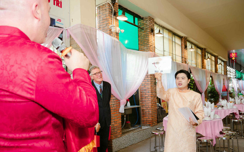 Khoảnh khắc đó, quan viên hai họ cười nghiêng ngả, một số người bất ngờ về khả năng đọc và nói tiếng Việt của anh.