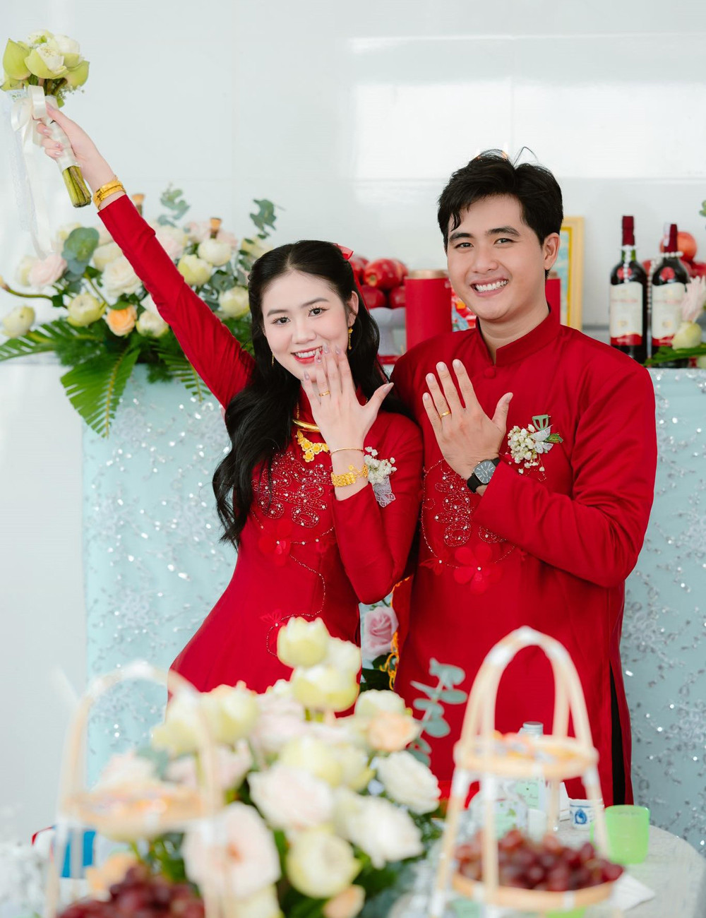 “Ngày 28 tết Nguyên đán 2025, anh ấy cầu hôn tôi. Mùng 2 Tết, nhà anh sang nhà tôi bàn chuyện cưới xin và đến nay thì tổ chức đám cưới. Mọi thứ diễn ra trọn vẹn, hạnh phúc như chúng tôi mong đợi”, Cẩm Giang chia sẻ.