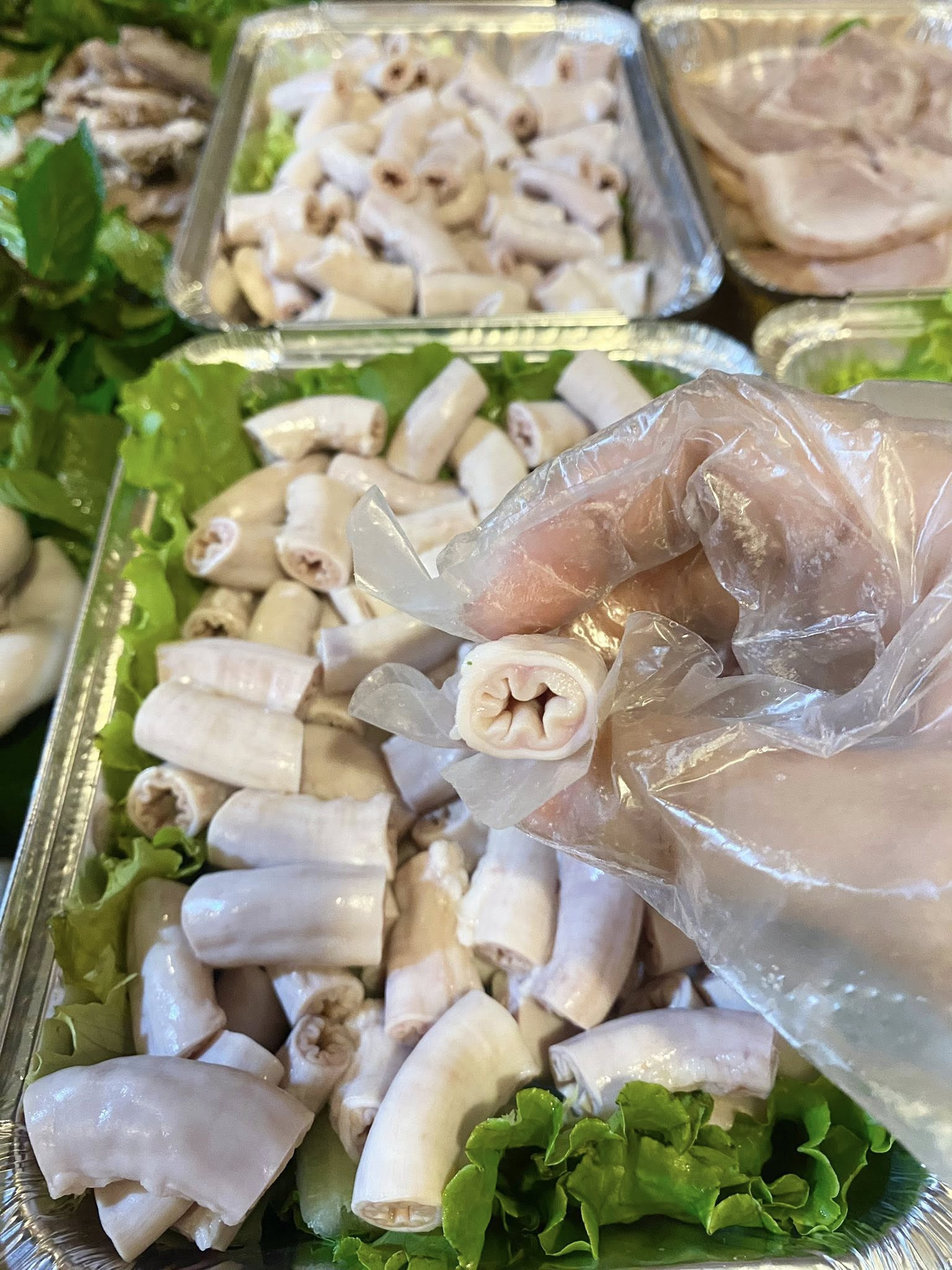 "Thông thường, khi có khách đặt trước lòng se điếu, tôi mới gọi các mối hàng tìm giúp. Bởi món này có giá rất đắt mà phải chế biến trong ngày mới ngon. Nếu nhập về mà bán không hết sẽ lãng phí. Có khi khách phải đặt vài ngày, tôi mới tìm được 1-2kg lòng se điếu. Tôi không bao giờ hứa trước số lượng với khách”, chị nói.
