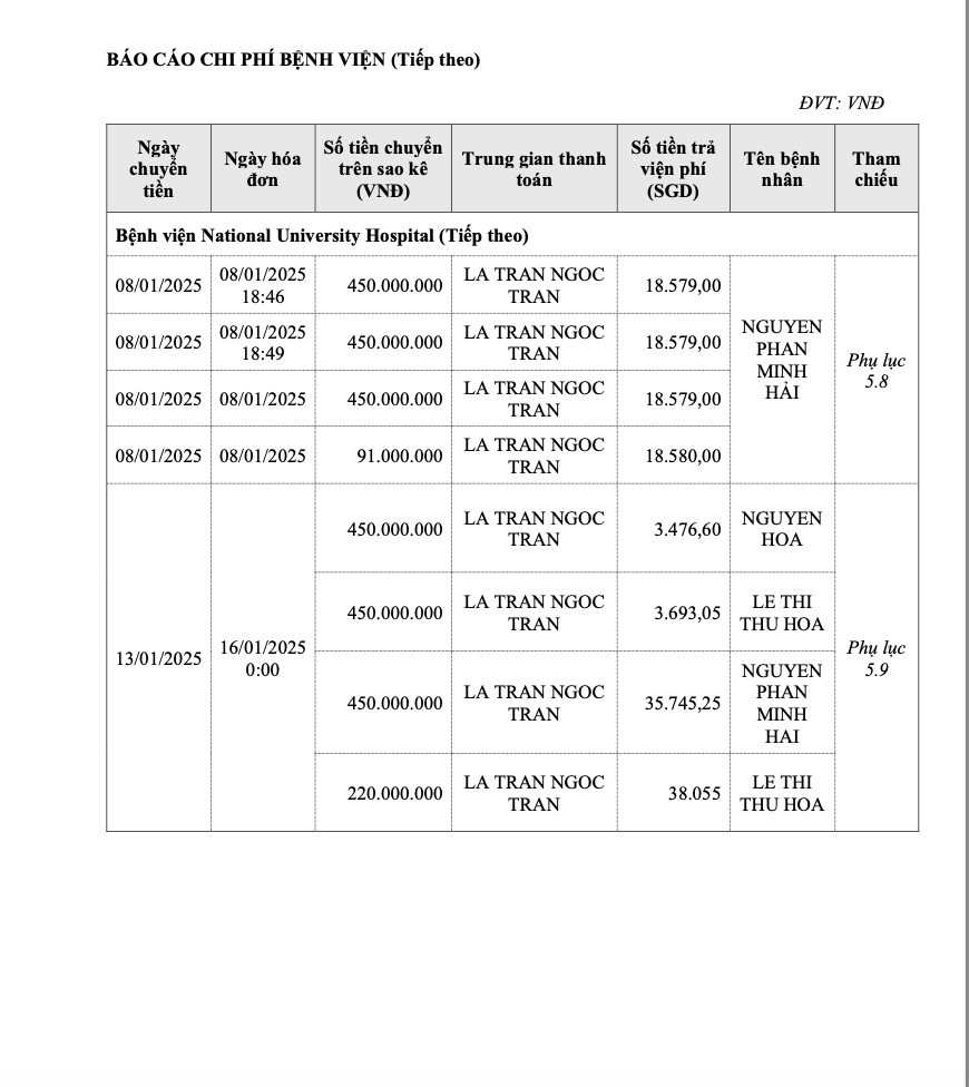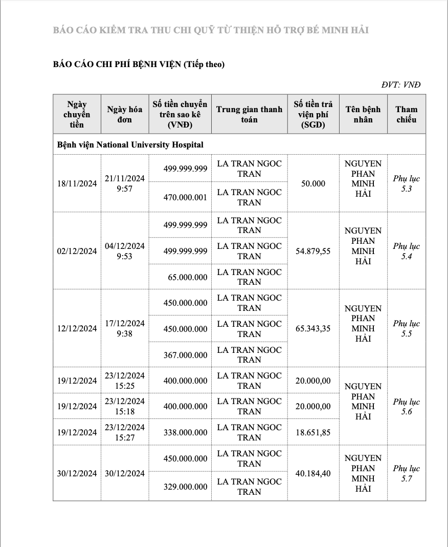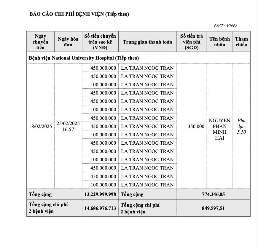 "Để đảm bảo số tiền được chuyển đến bệnh viện nhanh chóng, tôi đã nhờ một bên trung gian tại Singapore hỗ trợ nộp tiền viện phí hộ. Người hỗ trợ chỉ đóng vai trò trung gian, không có mục đích cá nhân và không muốn công khai sao kê vì lý do công việc.