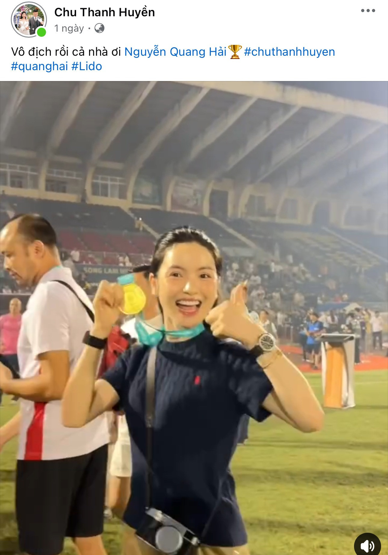 Điển hình mới đây, khi ra sân cổ vũ chồng trong trận đấu giữa CLB Công An Hà Nội và CLB Sông Lam Nghệ An, Chu Thanh Huyền không quên đăng tải video và status bán hàng ngay trên sân vận động.