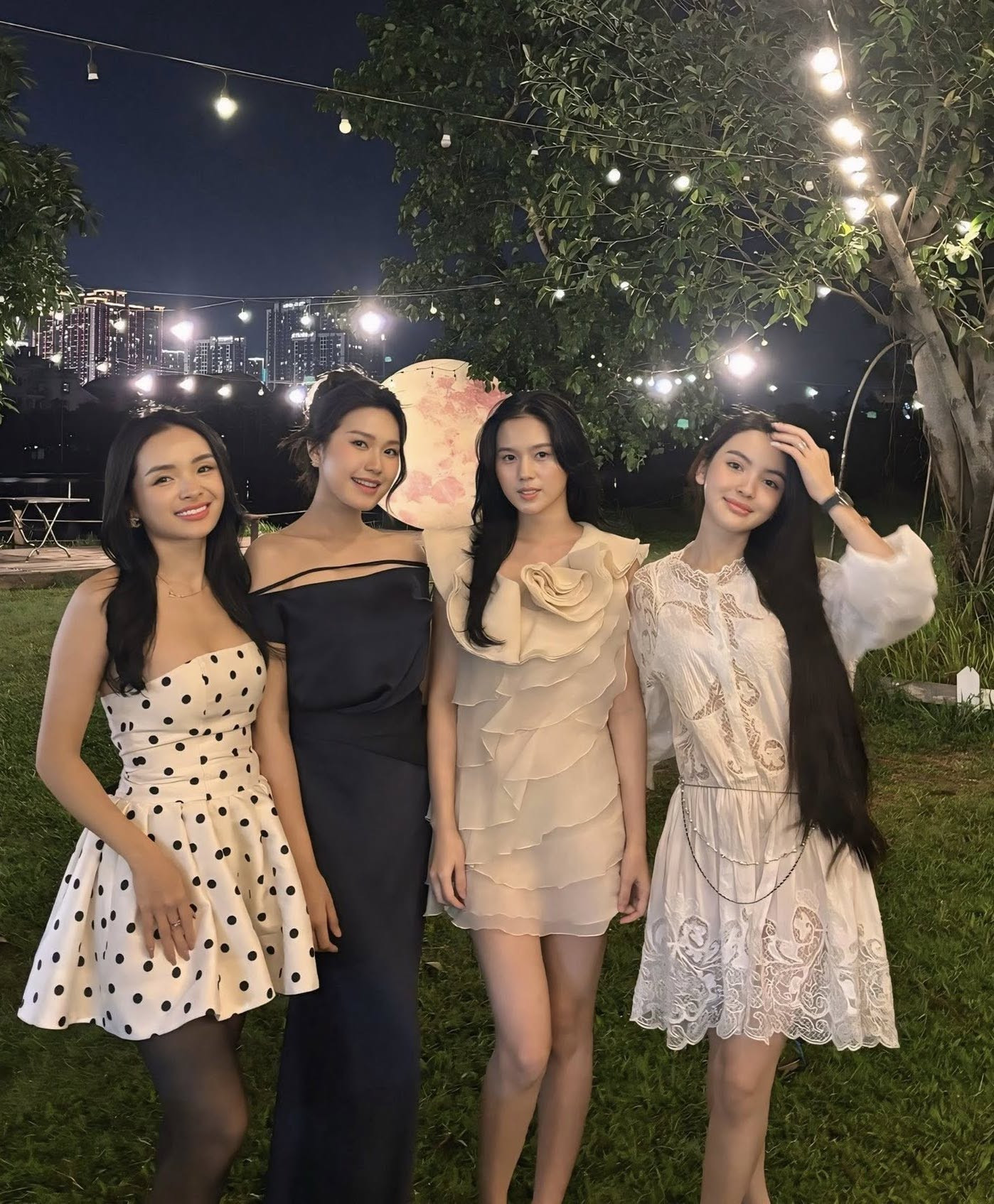 Trong lần hội ngộ với các nàng Wags Việt mới đây, Chu Thanh Huyền được đánh giá không thua kém Doãn Hải My (váy đen) vẫn được dân mạng ưu ái khen ngợi.