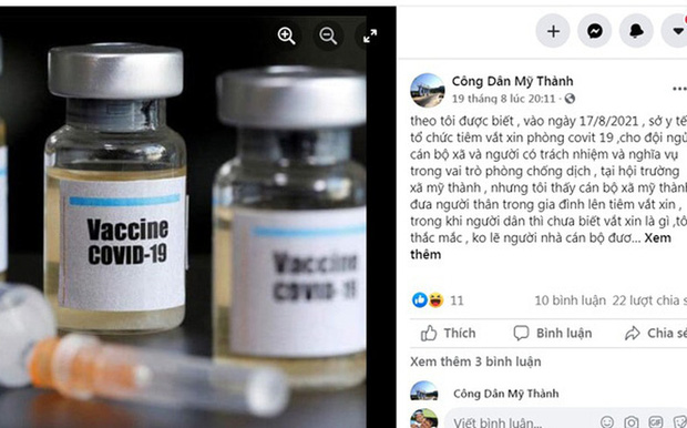 Trước đó, mạng xã hội xuất hiện thông tin chia sẻ về việc một số người thân của cán bộ xã Mỹ Thành (huyện Phú Mỹ, Bình Định) không thuộc đối tượng ưu tiên nhưng được tiêm vắc xin ngừa Covid-19.