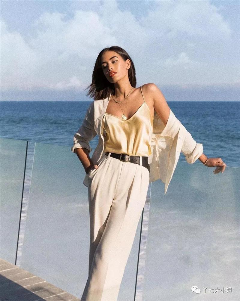Trang phục vải lụa mỏng nhẹ, mát mẻ và thoải mái nên thường được sử dụng trong các kiểu đồ ngủ. Nhưng ngày này, đồ lụa ngày càng thời thượng và được nhiều người mặc ra phố. Trang phục vải lụa tạo cảm giác cao sang và quý phái. Diện 1 chiếc áo hai dây vải lụa, mix cùng áo sơ mi trắng và quần âu là bạn đã có set đồ thời thượng hết nấc, đừng quên sơ vin để cao ráo hơn.