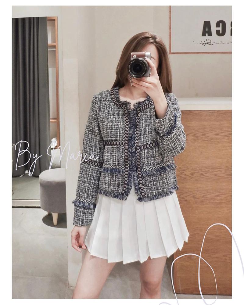 Nhìn thì tưởng chỉ hợp với những ai siêu bánh bèo nhưng kì tình, áo khoác vải tweed lại hợp với nhiều cá tính ăn mặc khác nhau. Bạn dù cool ngầu thì vẫn có thể "chiến" item này một cách ngon ơ. Hiện áo khoác vải tweed đang được bán nhiều lắm rồi, giá thì dao động trong khoảng hơn 300K đến gần 1000K tuỳ vào đó là áo nhập hay áo thiết kế.