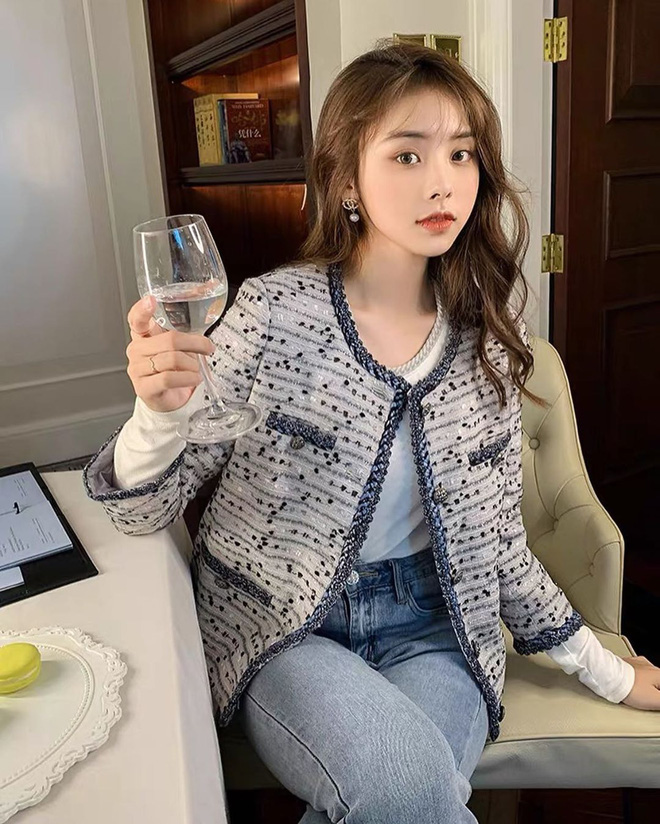 Nói đến tủ đồ mùa thu, bạn đừng chỉ xoay vần quanh áo blazer, áo denim mà quên mất sự tồn tại của áo khoác vải tweed nhé. Đây cũng là một trong những item kinh điển khi trời chuyển sang chế độ se lạnh đó nha. Ngoài việc giữ ấm thì kiểu áo này còn có một công dụng đặc biệt: sang chảnh hoá phong cách của bạn thêm bội phần.