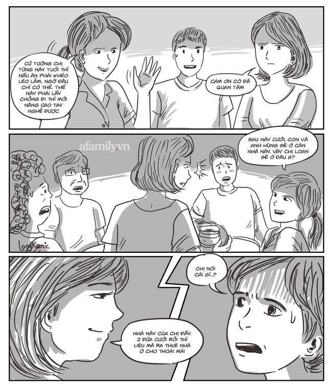 Nhưng đến cuối buổi nói chuyện, cô em dâu tương lai lại hỏi ngay bố mẹ tôi: "Sau này cưới rồi, con và anh H sẽ chăm sóc bố mẹ nên sẽ ở nhà này. Vậy chị L thì ở đâu ạ?".