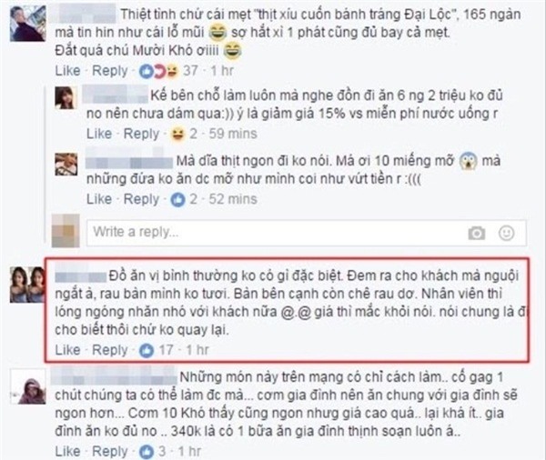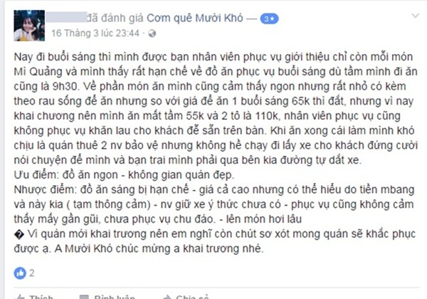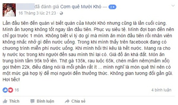 Người khác lại tiếp tục phàn nàn về thái độ phục vụ của quán cơm quê.