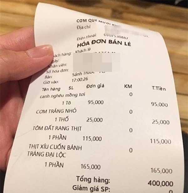 Dân mạng khoe hóa đơn sau khi rời khỏi quán cơm quê Trường Giang.