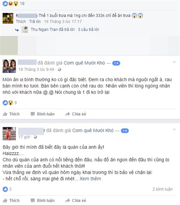 Những ý kiến chê trách về việc phục vụ của quán cơm xuất hiện nhiều trên mạng.