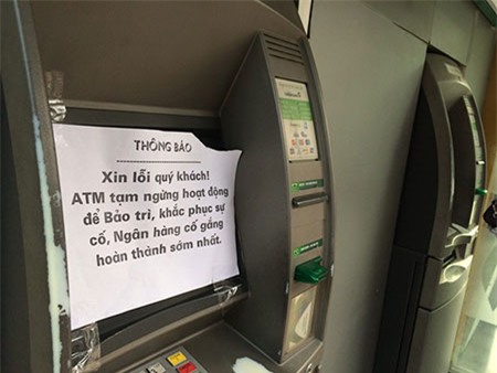 Chưa đến nghỉ lễ, ATM của ngân hàng đã ngưng hoạt động gây bức xúc cho nhiều khách hàng. Ảnh: L.A. |