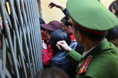 Đến 17g chiều, cửa vào sân chùa bị đóng khiến nhiều người bị ách lại bên ngoài. |