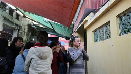 Nhiều người đứng ngoài vái vọng vào trong. |