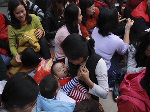 Nhiều người cho con đi cùng, chịu cảnh chen lấn nên trẻ mệt mỏi. Ảnh: Trần Thường |