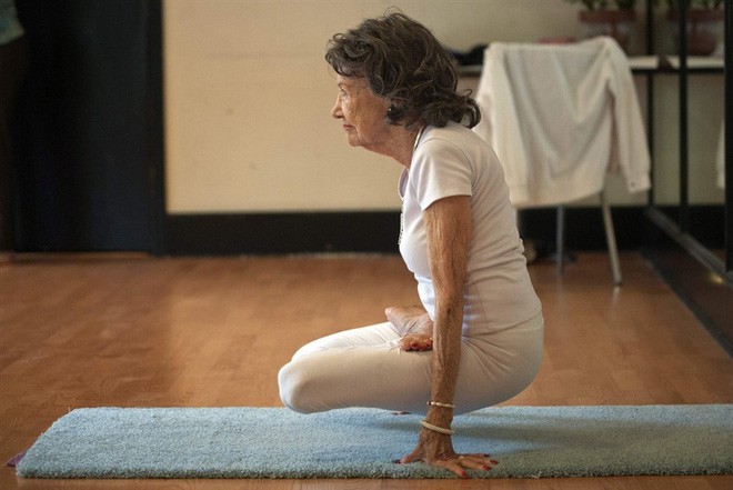 Cụ bà Phylis Sues, 90 tuổi ở Mỹ đã bắt đầu tập yoga lần đầu tiên ở tuổi 85. 5 năm sau bà đã thực hiện được những động tác điêu luyện khiến nhiều người "há hốc mồm".