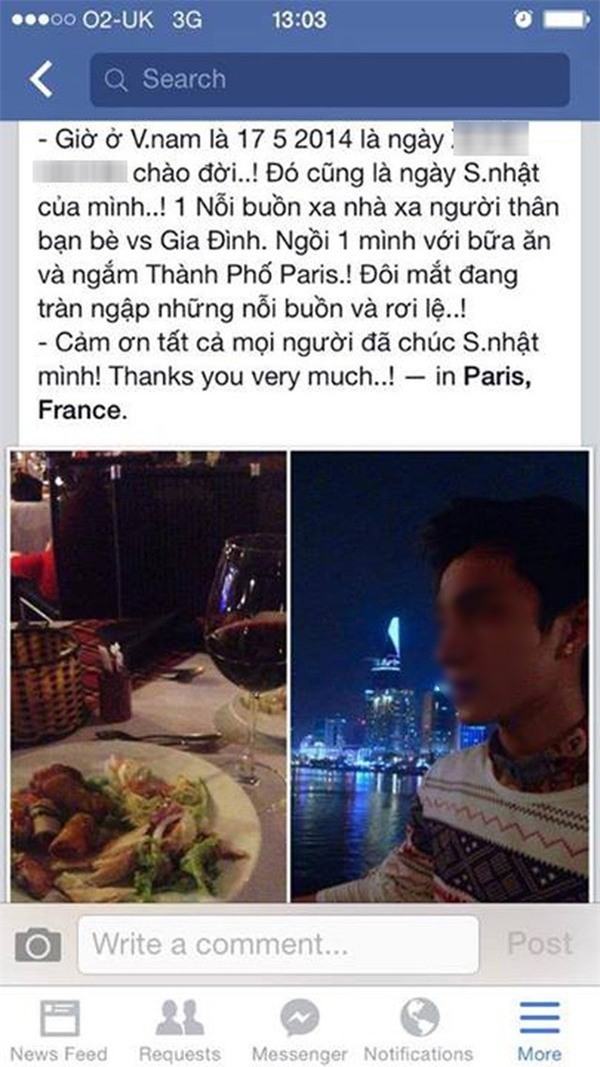 Bên cạnh đó, anh chàng có tên Facebook X.X.A.R còn từng khoe rằng mình đang đón sinh nhật ở Pháp, trong khi hình nền chụp ảnh lại có cả... tòa nhà cao tầng quen thuộc ở thành phố Hồ Chí Minh.