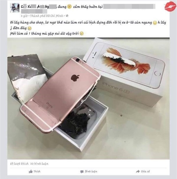 Mới đây nhất chính là chuyện một bức ảnh chụp lại chiếc iPhone 6s bị vỡ đến cong vênh mà có tới ít nhất 4 tài khoản Facebook tự nhận nó là của mình với những caption khiến dân tình chẳng biết nên cười hay khóc. Bạn nữ thì viết rằng "Có những sự tiếc nuối mãi không quay trở về như ban đầu...", một bạn nam khác lại "có những sự tiếc nuối mãi vẫn không thể nói nên lời". Và 2 người còn lại thì tỏ ra xót xa vì điện thoại của mình bị xe ô tô cán ngang...