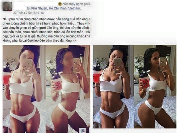 Mặc dù vốn là người yêu thể thao và sở hữu vóc dáng khá chuẩn rồi, thế nhưng cô gái có tên P.Q.T.N này vẫn ghép mặt mình vào body siêu hot của hàng loạt cô gái nước ngoài. Thậm chí vì "tay nghề" chỉnh sửa còn khá kém nên những bức ảnh này vẫn bị lem nhem và hầu như ai nhìn cũng biết là ảnh ghép.