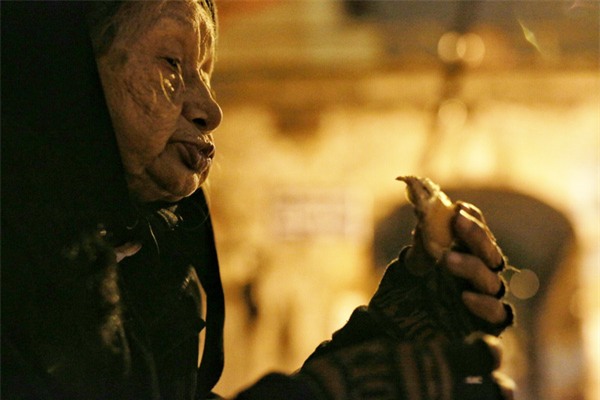 Bên góc chợ Đồng Xuân, cụ bà 87 tuổi đang ăn tạm miếng bánh mỳ của nhóm từ thiện tặng. Dù trời giá rét, cụ vẫn duy trì công việc hàng ngày từ chạng vạng tối tới sáng tinh mơ vì đây là công việc đem lại nguồn thu nhập chính của cụ.