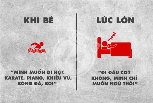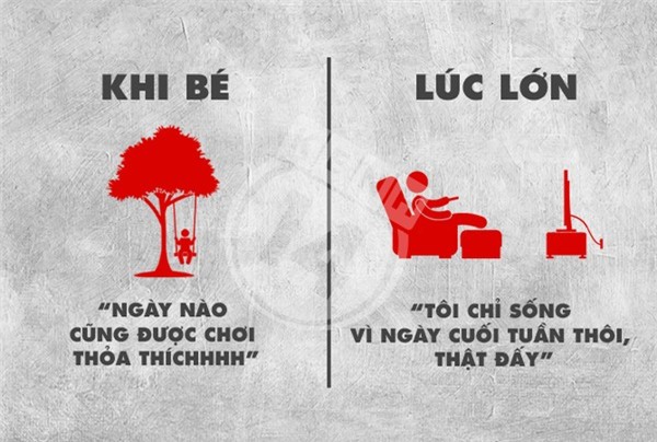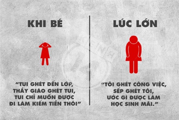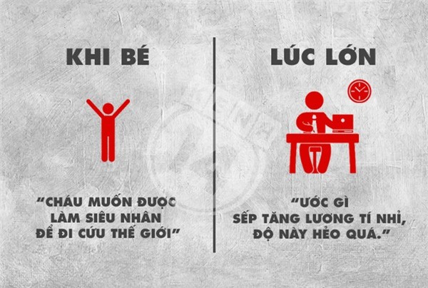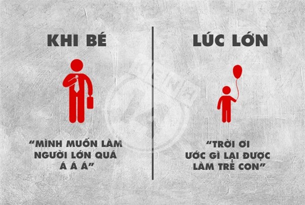 Khi còn bé, mọi suy nghĩ của chúng ta đều ngây thơ và đầy hoài bão, đến khi trưởng thành chỉ còn lại những thứ đơn giản và thực dụng, hãy cùng xem bộ ảnh dưới đây để biết được suy nghĩ của trẻ con và người lớn trái ngược nhau như thế nào nhé.