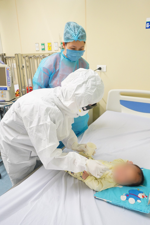 Phòng cách ly bệnh nhi nằm theo dõi, chăm sóc và điều trị tại Trung tâm Y học lâm sàng các bệnh nhiệt đới trẻ em, là một trong 5 phòng cách ly tiêu chuẩn của cả nước, đảm bảo không lây nhiễm được ra môi trường, không lây nhiễm cho cán bộ y tế, đảm bảo tốt nhất về phòng hộ. Bệnh viện Nhi Trung ương đã cử 2 bác sĩ và 2 điều dưỡng để thay phiên nhau chăm sóc 2 mẹ con cháu bé. Nhóm 4 nhân viên y tế này cũng được cách ly tại khu vực lưu của bệnh viện.