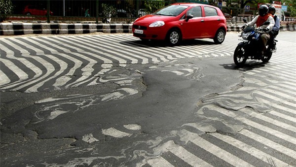 Nhiều khu vực tại Ấn Độ đã tan chảy theo đúng nghĩa đen dưới nắng gần 50 độ C. Theo ghi nhận, 1 tuyến đường ở Delhi đã bị tan chảy do nhiệt độ ngoài trời quá cao.